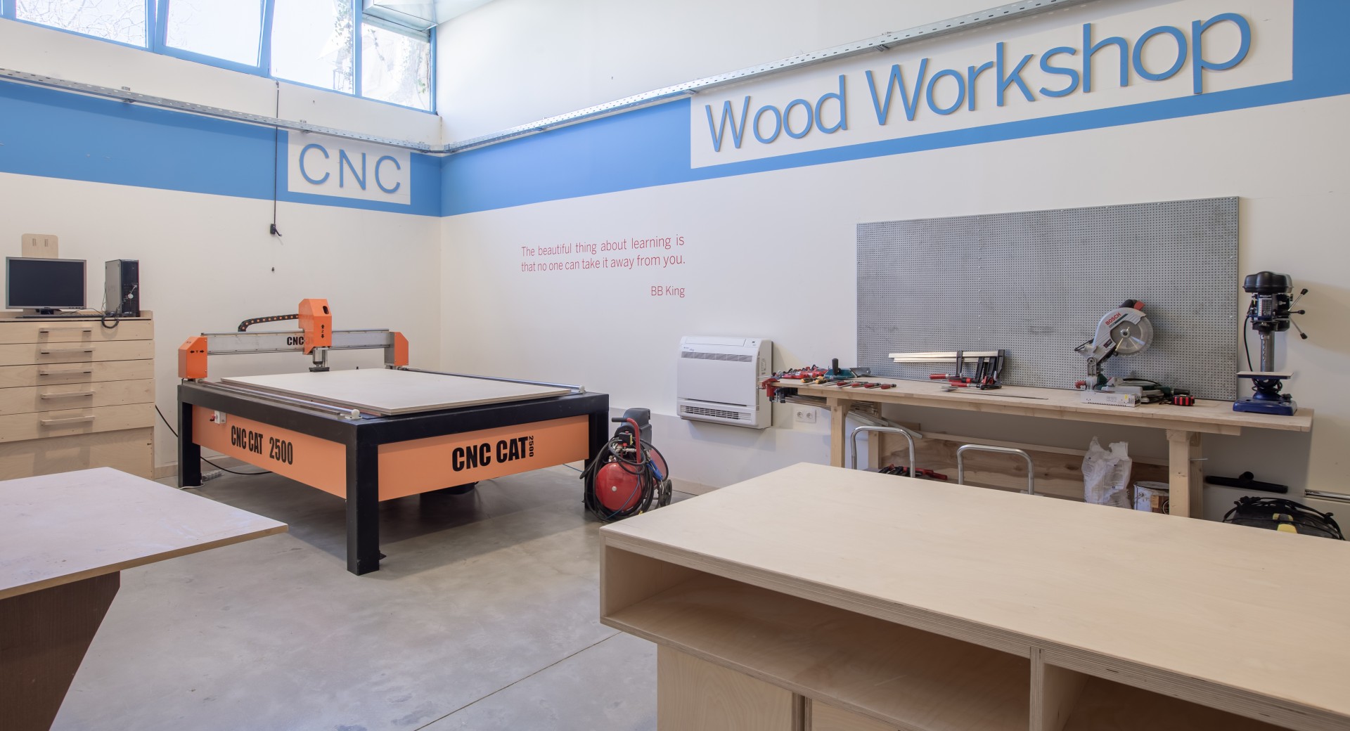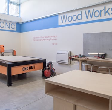 Our in-house maker lab features a professional woodworking area, CNC routers, 3D printers, and digital fabrication tools. These spaces allow learners to experiment, prototype, and build—developing technical skills while fostering creativity and innovation.